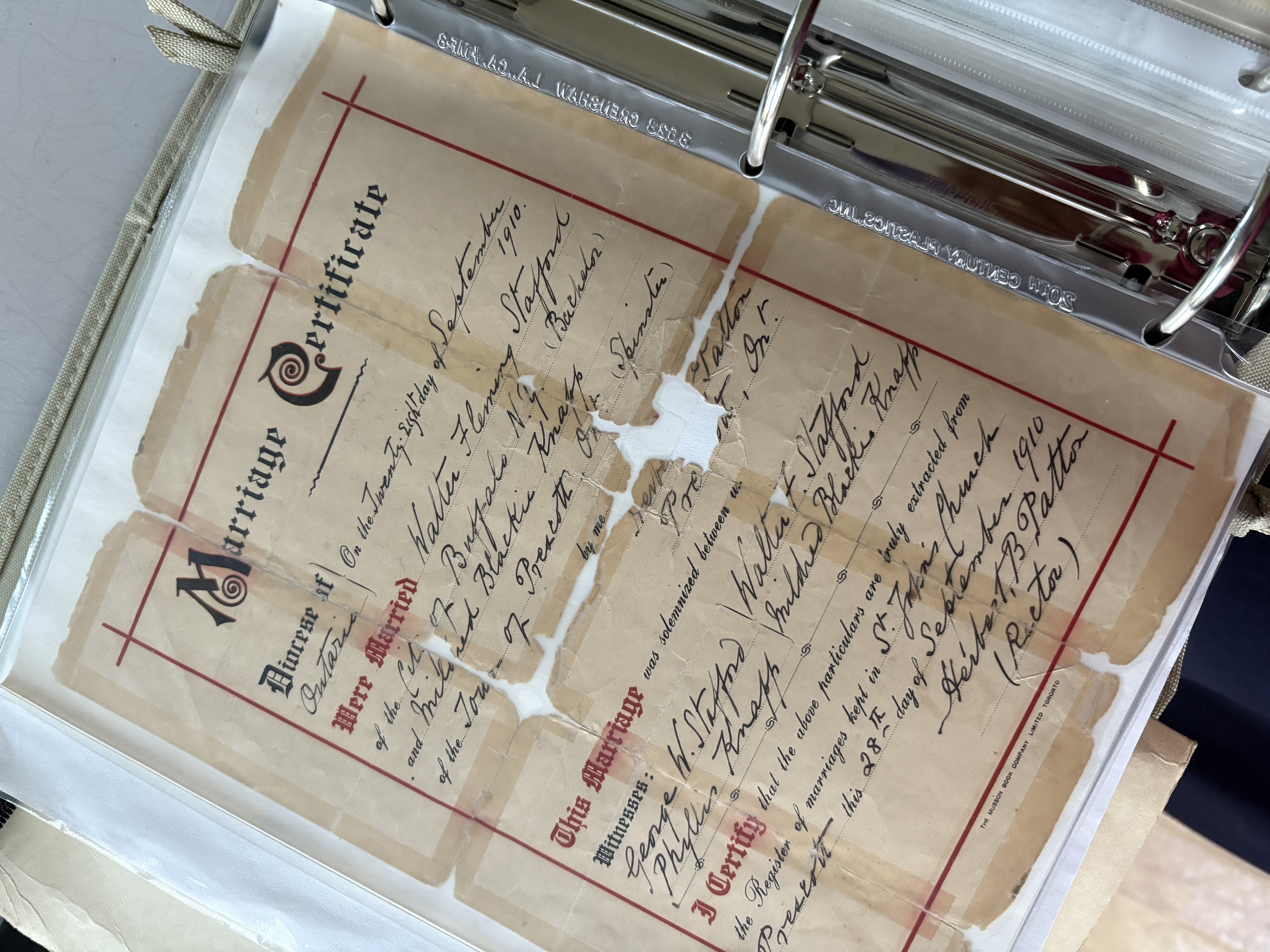 I am well aware that some things were destined for the wastebasket and never got there. You can sort those things out. You do not have to keep everything! Your muniment box should not resemble a junk drawer. When you come across something that you might want to discard, ask yourself if it has a story or adds to another story. Take a picture, just in case, write what you know, and discard it. You can keep the stories and primary source material without keeping the actual item.
