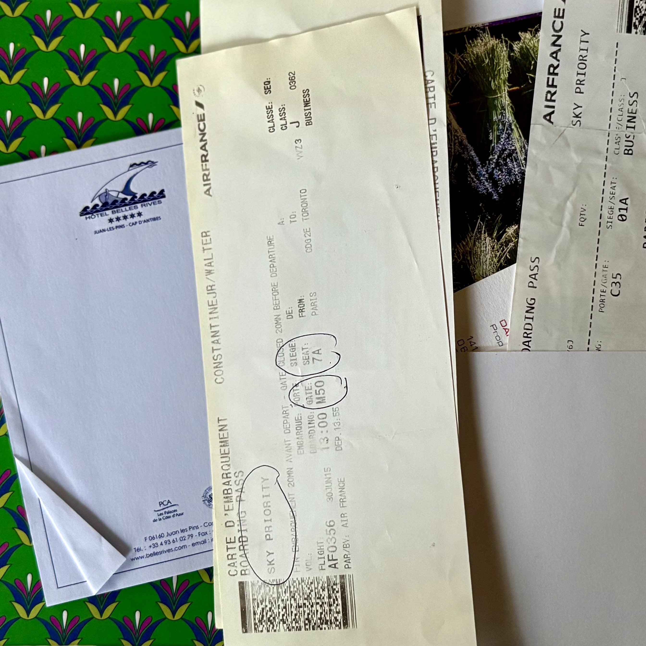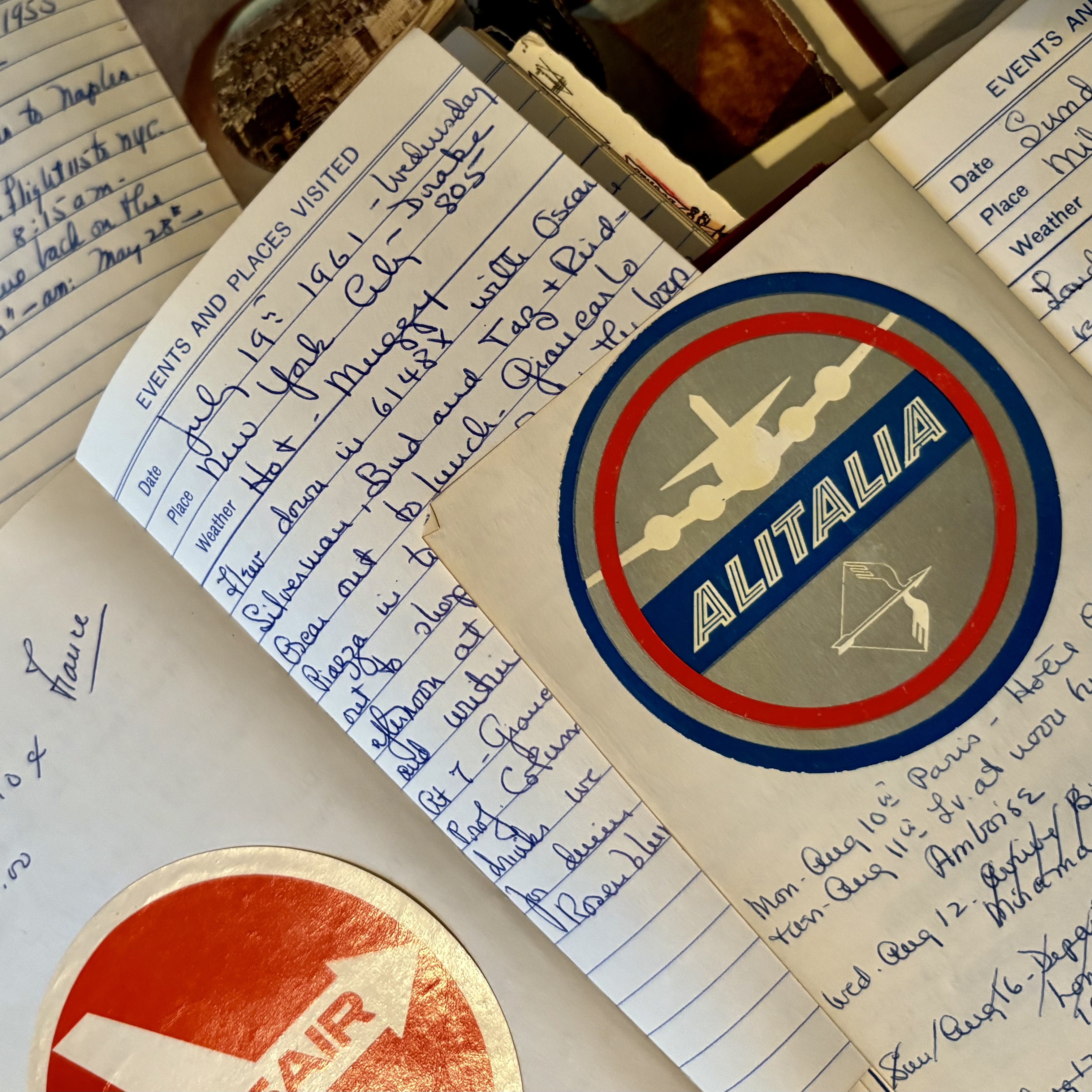 Those hold tickets, postcards, receipts, and my descriptions of the trip. I also always brought back some great finds. I tell the stories of those things with a description of my experience buying them. The leather goods from the street market in Florence, the pottery from Rampini in Radda, the umbrella from Swain Adeney Brigg in London. All of these things invoke a story of a building hanging off a cliff, lunch in a castle restaurant with the castle depicted on the bowls, rushing through the pouring rain to find what is now a favorite umbrella.